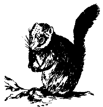 图388 松鼠 松鼠Songshu啮齿目松鼠科动物的统称。身体细长,尾长大多与体长相等。后肢与前肢等长或长于前肢,前足掌裸露,爪锐利成钩状。上、下颌各具一对门齿,门齿无齿根,可终生生长;无犬齿;上颌每侧有前臼齿2个、臼齿3个,下颌每侧有前臼齿1个、臼齿3个。颧骨较大,构成颧弓的前半部。额骨有较为发达的眶后突起。大多生活在山林之中,有树栖、地栖和地下穴居三种生活类型。树栖的种类尾巴较长,尾毛蓬松,耳壳大;地面生活的和地下穴居的种类尾巴短,耳壳小。常在早、晚活动,可以上树,善于跳跃,食物以坚果、浆果及农作物的种子为主。由于身轻体巧和行为活泼而深受人们的喜爱,但数量过多时,可以对林木造成一定的危害。全世界约有240种,分布在我国的有26种,常见种类有灰松鼠、(Sciurus vulgaris)、岩松鼠(Sciurotamias davidianus)和花鼠(Tamias sibiricus)等。灰松鼠又称松鼠、灰鼠,主要分布在东北和华北地区,栖息于针叶林或针阔混交林中,白天常在树上活动。口无颊囊,尾毛蓬松,尾长超过体长之半,背毛以灰色和灰褐色为主,腹毛白色。以松子、核果及嫩芽为食,巢多营在树洞中。岩松鼠多在岩石间活动,巢多营在岩石缝中,以坚果、胡桃、杏以及农作物为食。花鼠因背上有数条黑色花纹而被称作五道眉,主要分布在我国东北和华北一带,常潜伏在倒木下或树根基部的洞穴中,能攀树。颊囊发达,食物以松子、坚果为主,有贮藏食物的习性。