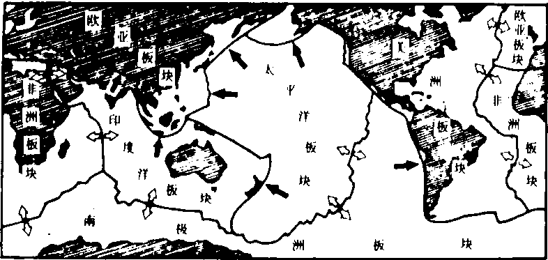 ❹板块驱动力:是什么力量驱使板块进行运动,这是未完全解决的问题。通常的说法,认为在地幔中由于放射性元素蜕变产生的热分布不均,从而产生热对流现象,并且形成若干对流中心。在对流上升的地方,遇到岩石圈底,即向两侧水平分流,同时使岩石圈张裂,形成大洋中脊(或大陆裂谷),随之地下岩浆涌出,冷却凝固形成玄武岩新洋壳; 后涌出的地幔物质,又把已形成的洋壳向外推移。当移动的大洋壳遇到大陆壳时,就俯冲钻入上地幔中。俯冲带是对流下降的地方,一则由于洋壳比重大,二则由于位置低,乃因拖曳作用形成深海沟。在大洋壳向大陆壳俯冲的地方,好象一个漏斗,岩石圈的物质随着俯冲进入这个漏斗,逐渐为地幔所熔化,上升成为火山活动,并形成岛弧。大洋壳在中脊处诞生,到海沟岛弧带消失,一面生长,一面消亡,不断更新,大约每隔2亿年,海底全部更新一次。近年在海底测出许多热流量数据,发现在中脊部位热流量较高,是对流上升和地热的排泄口; 而在海沟部位热流量较低,是对流下降的地方。这一事实说明地幔对流是可能存在的。但也有人对地幔对流在理论上是否存在表示怀疑,他们认为地幔是固体,不能产生热对流,而热只能靠传导来传递,就象对铁加热那样。也有人认为在上地幔软流圈中可以产生物质对流,但有人认为软流圈粘滞系数太大,不可能产生对流。1972年,J·摩根提出 “地柱说”,在地幔中形成许多“热点”和“热柱”,炽热岩石上升的圆筒状地区称热柱,热柱在地表的投影即热点。热柱把岩石圈拱起形成圆丘,圆丘相连形成大洋中脊,使岩石圈板块由洋脊向两侧倾斜,在重力作用下产生滑动,推挤板块与板块碰撞,发生俯冲。也有人认为板块由中脊向两侧滑动,是因板块前缘冷却、加重、下沉引起的,这种下沉拖拉力比中脊的推挤力要大7倍。上田诚也(1975) 认为板块运动是许多力综合作用的结果。 ❺板块构造与地震和火山: 如果把世界地震震中分布图同六大岩石圈板块图进行对比,可以看出世界震中分布几乎和世界板块的边界完全吻合,即大洋中脊或中隆 (海岭)、转换断层、深海沟及岛弧 (俯冲带)、地缝合线以及大陆裂谷等都是地震活动频繁的地带。而板块内部则没有或少有地震。但在板块不同的边界地带,地震带的宽窄和地震震级的大小不同: 如在拉张型边界 (洋中脊、裂谷带) 及剪切型边界 (转换断层),构造简单. 地震带窄,一般都是浅源地震(0~70) 公里,震级也小。在挤压型边界 (海沟、岛弧、俯冲带),构造复杂,地震带宽,从浅源到深源地震都有,而且其分布也有一定规律,即在海沟和岛弧之间多为浅源地震,地震频繁; 由海沟、岛弧向大陆方向震源逐渐加深,多为中源地震(70~300公里);再向里去则为深源地震(300~700公里)。它们构成一个连续面,以倾角45°±15°的坡度从海沟向大陆下面倾斜。美国地球物理学者贝尼奥夫认为这个地震带剖面相当于板块俯冲带,故又称为贝尼奥夫带。地缝合线也属于挤压型边界,如喜马拉雅山——雅鲁藏布江一带,地壳加厚,构造复杂,地壳十分活动,地震密集,浅源地震之外,并间有中源地震。从上可以看出,板块构造说是目前解释地震带分布的较完善的理论。 如果把世界火山分布同全球板块边界作一对比,同样发现二者几乎一致的规律,而板块内部则没有或少有火山活动。火山活动主要分布于以下三个地带: 大洋中脊火山带: 大洋中脊是地幔物质涌出的地方,喷发基性熔岩。在几处热点上有火山喷发活动,如冰岛火山、夏威夷群岛的冒纳罗亚火山等。随着洋壳不断产生和扩散外移,活火山逐渐熄灭变为海底死火山,所以近洋脊多为活火山,远洋脊多为死火山。常密集成群或排列成行,约呈对称形式分布于洋中脊两侧。 板块俯冲带和碰撞带上的火山带:主要分布于环太平洋带和古地中海的板块碰撞带。据研究,当板块俯冲到距地表150~200公里深时,板块因摩擦生热,致使部分板块熔融形成岩浆,上升喷出地表,大约刚好在距深海沟中心线150~200公里处生成火山,构成环太平洋火山圈。日本富士山、印度尼西亚的喀拉喀托火山、意大利的维苏威火山等都是这一带知名的火山。 大陆裂谷火山带:如东非大裂谷北段曾有多期岩浆喷发活动,形成埃塞俄比亚熔岩高原。此外,还有世界著名的火山如乞力扎马罗火山(5895米)、肯尼亚火山(5199米)等。 ❻板块构造与造山作用:根据传统概念,一个地槽由于长期下沉,接受了巨厚的沉积;到了一定时期,终止拗陷和下沉,又转为回返上升,造成褶皱和断裂,并形成高耸山系。为什么一个地槽的回返可以导致地层的强烈褶皱,甚至形成远距离的推覆体,很显然,这些构造的产生有赖于地壳的水平移动。板块学说认为,当两个板块相向碰撞,会产生很大的挤压力,使陆块边缘沉积的地层发生褶皱;或一个板块对另一个板块向下俯冲或向上仰冲,从而构成褶皱带和巨大断裂,并形成山脉。如欧洲的阿尔卑斯山是推覆构造的典型地区,自南向北,前后四次形成大推覆体。这是非洲大陆板块和欧亚大陆板块互相碰撞的结果(地缝合线区)。又如喜马拉雅山是世界最高山脉,也是大陆板块对大陆板块碰撞的典型地区(地缝合线)。中生代时印度半岛与亚洲大陆中间隔着特提斯海(即古地中海)。印度陆棚北缘在中、新生代时进行冒地槽沉积。后来,印巴次大陆向北移动,并俯冲于欧亚板块之下。印度河及雅鲁藏布江就是沿着
