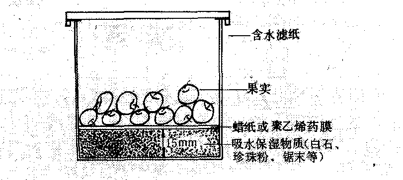 杀菌剂生物测定之一。将果实用药剂处理后,接种病原菌,经定温保湿培育一定时间后检查发病情况明确药效。测定方法为,用砂纸轻微地擦伤果实表面或用针刺伤果皮,再将果实在一定浓度的药液中浸渍一定时间或喷上药液,晾干后,用脱脂棉球蘸取病菌孢子液,在果实上轻轻摩擦进行接种。然后将果实放入玻璃保湿器中(见图),在一定温度条件下经过数日,观察发