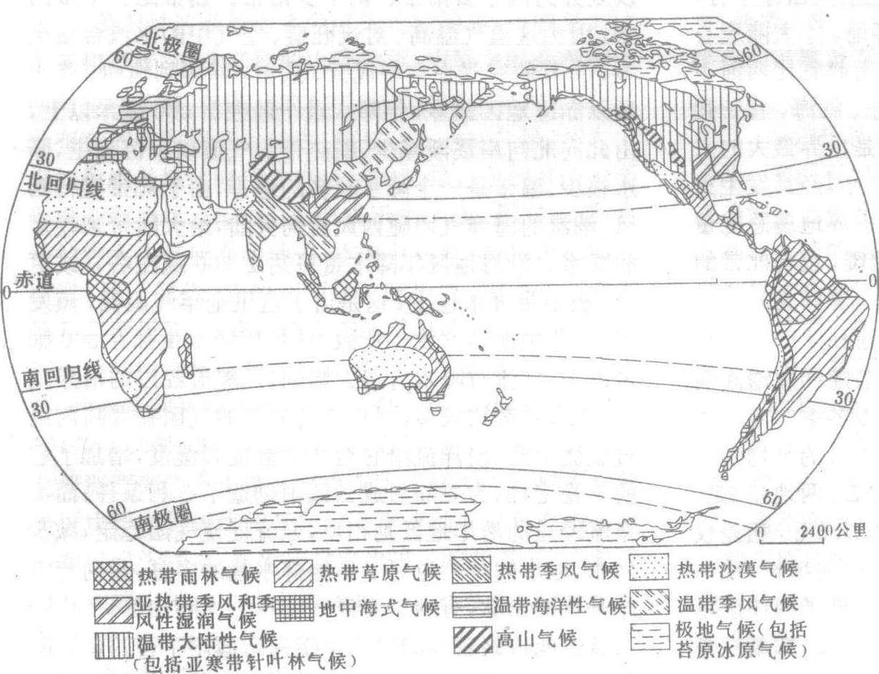 将世界气候按所定的热量、水分或其他指标,区划成若干相对一致的气候区,称气候类型。目前地理学界广泛流行的气候分类方法把世界气候分为以下类型: