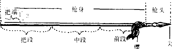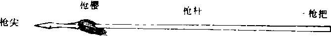 枪的部位名称 枪刺击兵器名。形制和矛相似。由枪尖、枪缨、枪杆组成。后汉时已大量应用,当时枪刃尖长。至晋代,枪头演变的短而尖。晋代以后更加兴盛。唐和五代已成为军队中的主要武器。种类很多,有漆枪、朴头枪、箭形枪、曲刃枪、钩镰枪、标枪、大枪、花枪、双头枪等,枪头形状各异。 枪Qiang武术长器械的一种。形状和各部位的名称见图。