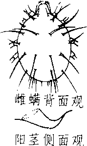 | 释义 | 柑橘全爪螨citrus red mitePanonychus citri(Mc-Gregor),又称柑橘红蜘蛛。蜱螨亚纲,真螨目,叶螨科。世界分布;中国主要分布于南方。为多食性害螨,为芸香科植物的重要害螨。体柔软,长约450 μm,卵形,深红色。须肢具胫节爪,螯肢针状。属前气门,气门沟末端略膨大。背毛膨大,具茸毛,生于疣突上,外骶毛与臀毛等长,约为内骶毛长的1/3。足4对,足I2对双刚毛靠近,爪为条状,生有一对黏毛,爪间突爪状,具3对腹基簇。阳茎无端锤,末端尖,“S”状。一年发生20代左右,喜高温湿润,中国南方终年均可繁殖。以保护或人工释放捕食螨;喷洒三氯杀螨醇、三氯杀螨砜等农药为主要防治措施。