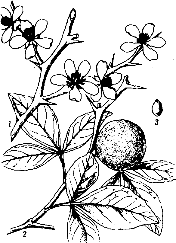 属间杂种比较重要的还有澳沙檬与酸橙的杂种沙酸橙(Eremoradia); 与甜橙的杂种沙甜橙(Eremora-nge);澳橘檬与金柑的杂种金橘檬(Faustrim)等。多样的种质使利用时增加了选择机会,但又带来了收集、保存的困难。柑橘植物的种子多具多胚性,多个珠心胚一个合子胚,而且珠心胚占优势,合子胚往往败育。因此, 不论是有性杂种或是体细胞突变而来的变异, 即使是通过种子繁殖也大多能保留下来。 主要柑橘种质资源 对柑橘属植物的分类参照曾勉的意见, 分为以下几类: 大翼橙类 中国有红河橙(C. hongheensis)、马蜂柑(C.hystrix DC.)、宜昌橙(C. ichangensis Swingle)等, 翼叶特大, 汁泡具芳香油点, 种子单胚。红河橙、宜昌橙为中国原产, 野生分布。这类柑橘有许多天然野生类型。有的已用作砧木,如香橙(C. junos(Sieb.)Tanaka)、菲律宾大翼橙(C. macrophylla Wester)是柠檬的砧木。 枸橼柠檬类 有枸橼(C. medica L.)、柠檬 (C.limon Burm.f.)、㰀檬 (C.limonia Osbeck)和来檬(C.aurantifolia Swingle)等。翼叶小或几不具翼叶,汁胞味酸, 除作酸果柑橘栽培外, 多用作砧木。一种起源于杂种的粗柠檬, 有强大根系, 耐旱, 抗衰退病等病毒病, 但容易感染根腐病和线虫, 在美国、阿根廷、澳大利亚、印度和南非广泛用于甜橙、葡萄柚和橘类的砧木。高产, 但果实品质差, 不适于作生产鲜果的砧木。檬在中国南方用作柑橘砧木。来檬有三倍体类型, 果实无核,是热带地区的主要酸果用柑橘;也可作酸橙或葡萄柚和橘柚的砧木, 其表现与粗柠檬相似。一种墨西哥来檬,可作为柑橘病毒的指示植物,将拟鉴定的柑橘枝条嫁接在它上边, 可以在较短期间内看出是否染有衰退病等病害。 柚类 有柚(C.grandis Osbeck)和葡萄柚(C.paradisii Macf.),柚原产中国, 葡萄柚有人认为是柚与甜橙的杂种。柚果特大, 种子单胚, 品种极多, 是很有潜力的种质资源。无酸类型的品种有沙田柚、梁平柚、垫江柚等。甘酸类型的品种有文旦、晚白柚。另产生有许多无核的类型。柚和葡萄柚作为柑橘砧木,都不理想。 橙类 中国原产有甜橙(C.sinensis Osbeck)和酸橙(C.aurantium L.), 甜橙是世界上主栽的柑橘种类, 各地长期栽培选择出许多品种和品系, 除普通甜橙外, 尚有果实无核的脐橙、果肉具红斑的血橙。普通甜橙在中国品种(系)很多, 无酸型的有新会橙、柳橙, 甘酸型的有锦橙、先锋橙, 以及从橘类嵌合体中选出的福建改良橙等。作为砧木,甜橙应用已不多,酸橙是世界上广泛使用的砧木。酸橙为深根性植物, 是甜橙、葡萄柚和橘的砧木, 果实品质优良, 缺点是不抗衰退病, 易受线虫为害。中国浙江的枸头橙是很有希望的抗衰退病砧木资源。 宽皮柑橘类 花单生, 皮可剥离,种子胚绿色,有异于以上各类。为中国原产, 品种极多, 是宽皮柑橘类的宝库。椪柑(C.reticulata Blanco)以中国为中心,西至伊拉克, 东到菲律宾, 广泛栽培。红橘 (C.tan-gerina Hort.ex Tanaka)是四川和福建的主栽品种。乳橘(C.kinokuni Hort.ex Tanaka)果小、味甜、少核, 是江西、浙江等地的主要品种。天然杂种很多,如温州蜜柑(C.unshiu Marc.), 果实无核, 丰产,味佳,在中国和日本普遍栽培。蕉柑(C.tankan Hayata),广东、广西南部普遍栽培。克里曼丁 (C. clementinaHort.)是地中海地区主栽的柑橘, 广泛利用其作杂交亲本。宽皮橘类作为砧木在中国应用较广。红橘、土柑、香柑和建柑在四川都是甜橙较好的砧木。美洲用Cleoptra为砧木, 嫁接橘、橘柚和葡萄柚, 在佛罗里达州表现良好。在巴西则用酸橘为甜橙的良好砧木。 柑橘属近缘植物 主要指芸香科柑橘亚科柑橘族柑橘亚族真正柑橘果树组植物中除柑橘属以外的5属植物。这些近缘属植物中, 除百蕊橘属外, 已进行利用和评价的有: 金柑属 中国原产, 约6种,1变种。有种子单胚种和多胚种, 发现有自然四倍体资源。果小,皮可食,一年开花多次, 耐寒, 童期较柑橘属短, 实生苗对土壤缺铜较敏感。是具明显休眠期和果皮油性状的种质。 枳属 原产中国, 为落叶树,极耐寒,能耐—26℃低温, 抗柑橘线虫病, 流胶病和衰退病, 但不抗裂皮病并对高氯及石灰过量的土壤敏感, 是世界重要的砧木之一(见图)。已选出了许多已命名的砧木无性系。日本已选育出30个以上的枳无性系, 可分为大花型和小花型两类, 各无性系间没有很大差异。中国枳的变异类型和天然杂种资源极丰富。枳橙砧在很多地区已经取代了酸橙砧, 许多选择系已命名, 在不同地区对不同接穗品种的表现各异。除枳橙外, 枳还有许多与其他柑橘类的杂交种。与橘的杂种(Citrandarin),与酸橙的杂种, 与柠檬的杂种(Citremons), 与甜橙的杂种(Citranges),与金柑的杂种(Citrangeguats)等。曾用它们中的选择系试作柑橘类的砧木, 只有与葡萄柚杂交的枳柚(Citrumelos)能用于经济生产, 其余均不如枳橙有希望。