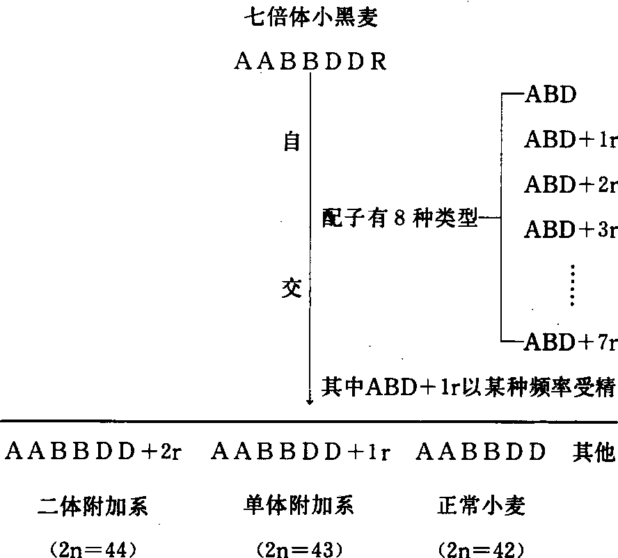 上述程序中,R为黑麦染色体组,1r为一条黑麦染色体,2r为两条黑麦染色体等。小麦的黑麦异附加系有七种类型。目前小麦中除附加黑麦的异附加系外,还有附加簇毛麦、天蓝冰草、大麦等的异附加系。 异代换系 一种植物的一对染色体被他种植物的一对染色体所代换而成的新类型。创造异代换系的基本材料是缺体植物和异附加系。如用黑麦的2R染色体代换小麦的2A染色体时,需用小麦缺体2A(2n=42-2A2)与小麦附加黑麦2R的附加系(2n=42+2R2)杂交。杂种F1的染色体数应为2n=42,其中有一条2A和一条2R染色体。减数分裂时染色体构型为20Ⅱ+2Ⅰ,两个一价体是2A和2R。减数分裂后产生的配子应有4种类型:n=20+2A+2R; n=20+0;n=20+2A和n=20+2R。因此杂种F1自交时,下代可望出现除20对小麦染色体外加一对2R黑麦染色体的类型。即2n=40+2R2(2n=42=21Ⅱ)。F1自交后代用正常的小麦测交,测交子代的减数分裂染色体构型若是20Ⅱ+2Ⅰ,即为异代换系。 易位系 通过代换或附加异源染色体,虽然可以把有利基因引入小麦等栽培植物,但引入的染色体还常带有不利基因。建立异源易位系可能将异源染色体上的有利基因转入栽培植物中,而减少或避免不利基因的作用。 创制小麦异源易位系的方法是,对带有目的基因的单体异附加系进行辐射处理,以这种基因的表型性状为标记,在后代中选择带有这种基因性状而染色体数为2n=42的个体。这种个体就是易位系。选用八倍体小黑麦等与普通小麦杂交,其七倍体杂种可产生具有21~28不同染色体数的八种配子类型。通过花粉培养获得的花粉单倍体植株,八种不同染色体组成的配子重组体都能保存下来,其中包括异代换系和异附加系。这是常规杂交法难以获得的材料。此外,花药培养过程中,常常发生染色体断裂、融合和重排等现象,可直接获得易位系。 实践意义 用染色体工程获得的小麦附加天蓝冰草的异附加系抗秆锈和叶锈病; 冰草染色体替代的小麦染色体3D的异代换系能抗15种秆锈病生理小种;有黑麦6R的小麦异代换系抗白粉病; 还有小偃6号是具有两个偃麦草染色体的小麦易位系,能抗各种锈病、耐干热风、丰产,已在生产上大面积推广应用。表明染色体工程在培育抗病新品种上有重要意义。 染色体工程chromosome engineering将一个物种的一条、数条或一组染色体有目的地添加、消除或置换到另一物种细胞中的技术。遗传工程及细胞工程的组成部分。广义的还包括染色体各种结构变异的诱发和应用。可直接或间接引发产生各种非整倍体类型,或作为整倍性育种的基础。由于置换或添加了亲缘植物有害或有利基因所在的染色体所形成的非整倍体(异代换系、异添加系及易位系等),可作为育种的中间材料,再通过进一步选择,将可育成具有特殊有利性状的植物优良新品种。(见“非整倍体”、“单倍体”、“多倍体”) |