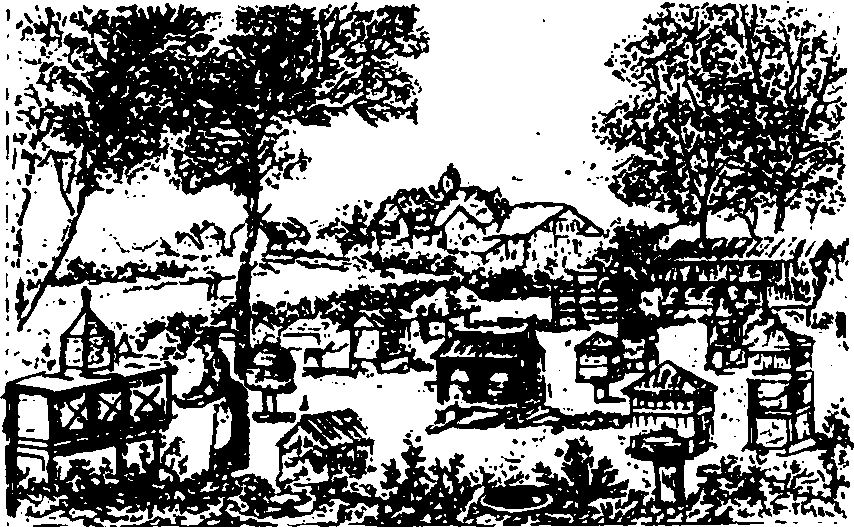 图7 19世纪初期英国的一个蜂场左下角为并列式蜂箱 德国N.雅各布1568年发现蜜蜂能用工蜂房里的小幼虫培育蜂王。这一现象又被A.扬沙和德国A.G.席拉赫两人分别于1771和1787年重新发现。瑞士F.于北在19世纪初期试验证明,工蜂房里孵化两日龄以前的小幼虫能被培育成蜂王。这种生物学现象对于人工培育蜂王特别重要,所有当代人工育王方法都是以此为根据。1771年扬沙和于北分别发现蜂王飞出巢外进行交配,波兰J.齐从通过控制交配试验证实雌性蜂来自受精卵,雄性蜂来自未受精卵,建立了蜜蜂孤雌生殖学说。 M.约翰1684年发现用针尖能从筑造巢脾的工蜂腹部取下蜡鳞。他第一个注意到蜡是蜂体产生的。1774年德国H.C.霍恩博斯特尔宣布是蜜蜂生产蜂蜡,并进行了正确描述。 1750年英国A.杜布斯发现蜜蜂采集的花粉就是使花的胚珠受精的“雄性种子”,以后德国人C.K.施普伦格尔1793年证实了蜜蜂在花的授精方面所起的作用,为现代养蜂学和利用蜜蜂为植物授粉打下了良好的基础。 早期从欧洲迁至美洲的一些移民,就已携带数群蜜蜂。大约在9~10世纪,爱尔兰人和挪威人就把西蜂带到了北美洲。据载,1621年欧洲黑蜂被带到美国弗吉尼亚州。1822年第一批欧洲黑蜂到达澳大利亚悉尼。第一批到达新西兰的欧洲黑蜂是英国W.C.科顿在1842年从英国带去的。从此西蜂传播到全世界,养蜂事业和养蜂学术研究在北美大陆取得了很大的进展。 活框蜂箱养蜂——19世纪初至1920年 17世纪后,人们制造方形、六角形或多层木板蜂窝,由蜜蜂自己在巢内筑造巢脾,养蜂工作只限于准备蜂窝、收捕分蜂群、割取蜂蜜、蜂蜡等。19世纪,活动巢框蜂箱、巢础、分蜜机等养蜂机具发明以后,养蜂业实现了手工机器化生产。 活框蜂箱的发展 19世纪波兰齐从、德国A.B.别尔李比西、法国D.比沃斯、英国A.芒恩等人曾试图设计巢框可以活动的蜂箱,但都未成功。 俄国著名养蜂家П.И.普罗科波维奇在1814年发明了有活动框的柜式(屉式)蜂箱,并用这种蜂箱饲养过上千群蜜蜂,但使用的框经常被蜜蜂粘住,而且框从后面抽出,取出和放入很不便利。美国费城养蜂家L.L.郎斯特罗什于1838年开始采用有活梁的蜂箱养蜂,他发现如果在箱盖和活动上梁之间留有3/8英寸(9.525毫米)宽的空间作为蜜蜂的通道,蜜蜂就不把箱盖和上梁粘连起来。以后经过不断实验,于1851年提出了“蜂路”的概念,发明了实用的、可以移动和互相交换的活动巢框蜂箱。到1861年这种蜂箱已在美国普遍推广,以后被介绍到欧洲和其他国家。各地就在同一原理下,设计制造出巢框大小和数量不等的活框蜂箱。 郎斯特罗什的同代人M.昆比在板箱式蜂箱的盖板上开一洞,上面加上可容5磅(2.25千克)蜂蜜的小蜂箱,当上面小箱充满蜂蜜时,就取下来收取蜂蜜和蜂蜡,并换上另一个小箱。郎氏活框蜂箱被普遍应用以后,人们很快就认识到,如果用同样的活动巢框箱体代替那个加在蜂箱上的贮蜜箱,使蜜蜂将巢框造上巢脾装满了蜂蜜,就很容易将蜜脾拿出来取蜜,这就是我们现在使用的继箱。 养蜂工具和饲养技术的发展 活动巢框的使用,使德国J.梅林1857年发明用平面压印器,制出了蜂蜡巢础,只有巢房的基础,没有房壁;瑞士P.雅各布对压印器作了一些改进。美国S.瓦格纳于1861年用压印器制出了带房壁的巢础。A.I.鲁特和A.瓦什伯恩制出了双辊巢础机,成为完善的制造巢础的手工机器。使用巢础能促使蜜蜂在镶上巢础的巢框内筑造出整齐划一的、绝大部分是工蜂房的巢脾,还可以减轻蜜蜂分泌蜂蜡,加快造脾速度。奥地利F.de赫鲁什卡设想如能找到某种方法取出蜂蜜又不毁坏巢脾,巢脾就可以继续使用。1865年他发明了离心式蜂蜜分离器。以后经过郎斯特罗什和鲁特等人改进成为齿轮转动的手摇分蜜机,使养蜂者能够生产液态蜂蜜,巢脾可以继续使用许多年。法国人A.科林制出了金属片隔王板,加在巢箱和继箱之间,阻止蜂王进入贮蜜继箱,因而继箱里的蜜脾就不再混有蜜蜂幼虫。美国人A.菲德斯于1876年用薄椴木片制出了巢蜜格,大量销售,使巢蜜生产商品化、规格化。使用悬挂式巢框的活框蜂箱,能够直接观察和研究蜜蜂的生活行为及发展状况,便于管理蜂群;取蜜时不必杀死蜜蜂;可以提高蜂蜜产量。巢础、分蜜机、继箱、隔王板的使用,加速了蜂群的发展,进一步提高了产蜜量,可以取到更加清洁、纯净的蜂蜜,也为蜜蜂生物学、蜜蜂病理学研究创造了条件。1897年美国G.德马利控制分蜂方法的宣布,为控制蜜蜂发生自然分蜂、培养强群提供了技术措施。 人工育王技术的发展 18~19世纪初期,一些想要了解蜜蜂生活的养蜂家,把蜂群分成两部分,让无王部分的蜜蜂自己培育急造王台。A.扬沙在1771年前,将新筑造的带有小幼虫巢脾的边缘切去,露出部分具有小幼虫的巢房。然后,将这巢脾挂在一只空木箱内,随即向箱内抖入一些蜜蜂,放置在阴凉处幽闭数日,喂以蜜汁,蜜蜂就在这一期间在巢脾边缘筑造许多王台。使用活框蜂箱以后,起初人们也是采用这种无王群割脾育王法,后来专门制造了有通风纱窗的3~5框箱,把蜜蜂装入箱里作为培育蜂王的无王哺育群,并称之为“分蜂箱”。现在还有许多专业育王场采用这种方法,作为人工育王的一个步骤。意大利蜂输入美国以后,到19世纪中期,购买意蜂蜂王和蜂群的需求量猛增,人工育王作为一项专门的养蜂技术迅速发展成熟。各地的养蜂家