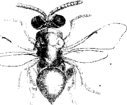 窝额腿蜂成虫 侵染 此蜂多活动在林带边缘及窝风向阳处,频频活动于蚕场树墩内,当柞蚕结茧后产卵寄生,并随采茧带回室内。产卵时以产卵管刺破茧皮而插入蛹体,卵直接产入蛹体内。1蚕蛹内可寄生57~140头幼虫。 病症 被寄生的蛹体初期无特异表现,病情渐进后,则出现环节松弛,表面失去光泽,颅顶板变为黄褐色或黑色而死亡。 防治 ❶早摘茧躲过寄生期; ❷选除已被寄生茧(手摇沉重声闷者),减少室内虫源; ❸在成虫羽化期用50%敌敌畏乳剂,每立方米0.3~0.5毫升进行室内熏杀,可收良好效果。 |