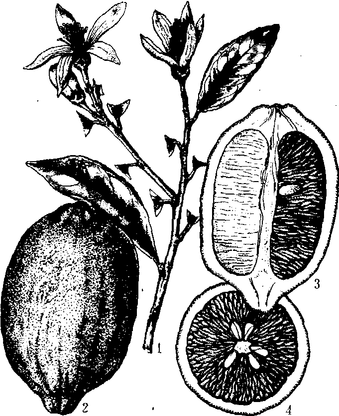 柠 檬1. 花枝; 2. 果实; 3. 果实纵剖面; 4. 果实横剖面 主要品种 柠檬的栽培品种有几十个之多。其中主要品种有: ❶尤力克(Eureka)柠檬。有译作优丽雅、尤力卡、有利加等。100多年前从意大利引到美国洛杉矶的实生柠檬树中选出。中国四川的重庆、江津、永川、泸州等栽培较多, 广东、广西、台湾、福建有少量栽培。树势及植株大小中等。枝条伸张,叶较稀疏,近乎无刺。进入结果期早且丰产, 在气候条件好的环境中周年有花果。抗寒力稍差, 寿命较短。果实中小型, 椭圆至长圆, 有时倒卵形; 基部具短颈; 果顶通常为短乳头状, 周围具浅环沟; 种子多少不一, 通常稀少或无。果皮成熟时黄色, 中等厚, 表皮稍粗, 油胞下陷, 一般有纵向微突条纹; 果皮紧贴果肉, 囊瓣10, 果心小而紧实, 肉黄绿色, 细嫩、多汁、含酸量高。周年有果, 但以冬末、春及初夏果为好。 ❷里斯本(Lisbon)柠檬。原产葡萄牙。在中国的分布范围和栽培数量均不及尤力克品种。树势旺盛,植株高大,树较直立, 具针刺, 叶丛较密。高产, 抗逆性较强。果中大, 椭圆至长圆;果顶常具大而明显的乳头, 周围有环沟, 其一侧常较深, 致使乳头向一侧歪斜, 比较明显。 ❸费米耐罗(Femminello) 柠檬。是意大利最古老最重要的品种, 能周年开花结果, 四季有收, 丰产又耐贮运, 特别适于夏果促成栽培。本品种引入中国为时不久,栽培较少。 ❹维拉法兰卡(Villafranca)柠檬。原产意大利西西里。适于温暖多雨的亚热带地区。树性果形均与尤力克相似, 树势强壮, 结果早而丰产。种子较多, 多者达20~30粒。幼树枝条针刺较多, 着叶较密。中国广东广州市郊及博罗杨村柑橘场有少量栽培, 生长良好。 ❺香柠檬(北京柠檬、美亚柠檬)。原在北京市郊丰台温室中栽培, 故名北京柠檬。约60年前传入美国, 名为美亚柠檬(Meyer Lemon),系柠檬与甜橙的天然杂交种。广东、四川、浙江等有少量栽培。树冠半圆形, 开张披垂, 树姿凌乱, 枝条强壮具针刺。叶缘锯齿密而整齐。生长快, 早结果丰产。嫩梢、嫩叶、花蕾紫色,花大。多次开花, 以早春开花最多和结果好,品质优良。4月上旬以后开花结果少。果圆形, 重120~140克,果皮浅黄色,光滑。果肉橙黄色,汁多、含酸3~4%,微有苦味。种子约4粒。主产期在8月中旬至11月。抗寒力较甜橙稍强, 在广东的乐昌、四川的金堂等地生长良好。含酸较低, 皮薄, 耐贮性较差。易染流胶病, 寿命较短。 栽培技术要点 柠檬抗逆性较弱, 宜选择冬无严寒、夏无酷暑、气温变化不大的地方。土壤以质地疏松、排水良好的缓坡地为合适。由于树冠披散, 株行距一般采用3~4米×4~5米。幼树生长旺盛,尤多在主枝, 副主枝弯曲处萌发徒长枝, 扰乱树冠, 应及早扶持主枝, 进行树冠整形。进入结果期后, 要在花芽前期控水, 并重施氮、钾混合肥, 以壮果保果, 提高坐果率。柠檬采收不必待完全着色,只要果实充分发育,皮色青略转黄即可采收。多数品种极易感染流胶病;果实疮痂病也严重, 要注意防治。 经济价值 柠檬有四季开花结果习性, 果汁柠檬酸含量达4~7%, 鲜果供应期长, 果实供制果汁饮料又可加工香精, 在国际市场上经济价值很高, 20世纪70年代世界总产量增长很快, 仍供不应求。中国市场需求也有增加之势, 可择地开园进行商品生产, 同时发展果汁加工业。 柠檬Ningmeng芸香科。又名黎檬。常绿灌木,具刺。叶小,长圆形至椭圆形,边缘有钝锯齿;叶柄短,有狭翅,顶端有关节。花单生或簇生叶腋内,淡紫色;雄蕊多枚。柑果圆形,长约4.5厘米,黄色至朱红色,皮薄易剥离。原产亚洲,我国南部多有栽培。果味极酸,广东一带将其渣去核蒸熟称柠檬饼,能消食开胃。另有洋柠檬(C.limon)和柠檬相似,但果椭圆形,用途和柠檬相同。 柠檬Citruslimon双子叶植物,芸香科。原产马来西亚。我国广东、广西、福建、台湾、四川均有栽培的一种常绿小乔木。果椭圆形或卵圆形、橙色或黄色,表面粗糙,先端呈乳头状。皮厚而香,果汁极酸而稍苦,是所有水果中含有机酸最多的一种,所以不能鲜食,多加工制成柠檬果汁饮料,如柠檬露、柠檬汽水,或柠檬饼、柠檬片、柠檬果酱等食品。果实除含有丰富的有机酸外,还含有糖类、钙、磷、铁及维生素B1、B2、C和烟酸等多种营养成分。柠檬具有生津、止渴、祛暑、健胃和安胎等功用。患有高血压、心肌梗塞的老年人常饮柠檬饮料,也可改善症状和缓解血液凝固的作用。此外,柠檬酸还有防止和消除皮肤色素沉着的作用。