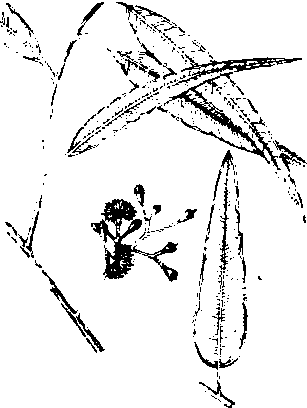 柠檬桉 柠檬桉桃金娘科大乔木。又称油桉。高达35m,胸径1.2m。树皮光滑,灰白色,片状剥落,树干通直。大树叶片互生窄披针形,长10~15cm,宽1~1.5cm。复伞形花序腋生,花蕾长6~7mm,花柄长3~4mm。蒴果坛形,长1~1.2cm。花期3~4月,果期10~11月。原产澳大利亚。中国20世纪20年代开始引种,福建、广东、广西、四川、云南气温高的南向山坡和河谷地广泛种植。生长迅速,在广东6年生幼树,高13~16m,胸径23~26cm。10年生后材积增长加快。20~25年进入成熟期。枝叶含芳香油0.5%~2%,幼嫩枝叶提取的桉油质量好,可供食品、香精、化工、医药等用。可作观赏树、行道树。 |