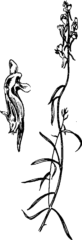 柳穿鱼toadflaxLinaria maroccana Hook.f.,玄参科,柳穿鱼属。一二年生花卉。原产摩洛哥。中国有栽培。茎直立,高20~30 cm,有黏质短柔毛。叶对生,下部叶轮生,叶片狭条形,全缘。总状花序顶生;唇形花冠,基部延生成一长距,花鲜紫色,喉部有黄斑。杂交种有雪青.玫红等色。花期4~5月。蒴果顶裂。种子细小。本种耐寒忌炎热,宜疏松及适度肥沃土壤。可自播,但多用春播,管理简易。常用作花坛及花境边缘材料,亦可盆栽。同属观赏种还有宿根柳穿鱼,花淡黄或橘黄色;弯距柳穿鱼,其距短而弯曲,花红紫色。 |