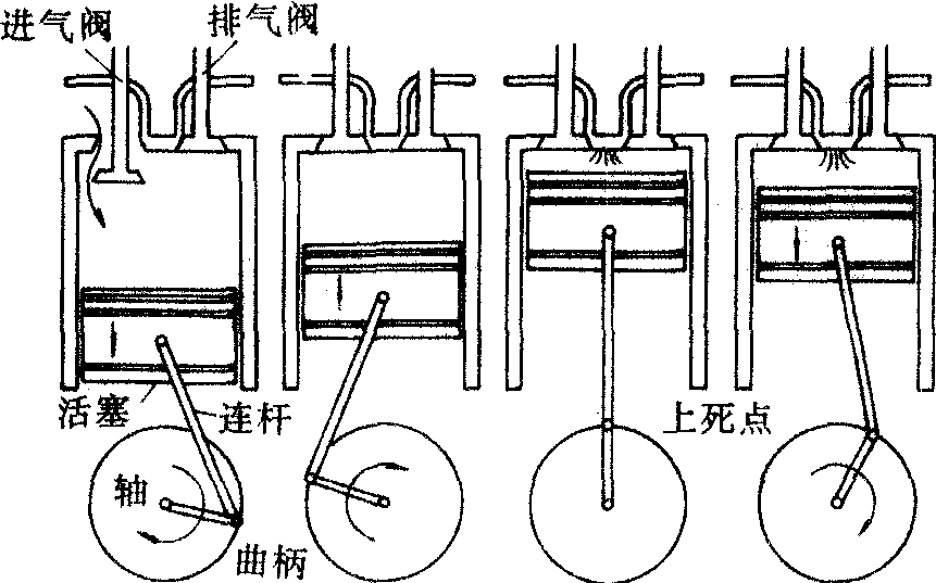 3-4过程:工作 4-1过程:排气 1-0过程:扫气