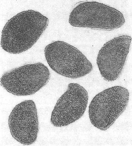 湖南长沙马王堆出土西汉柿核 7×2米。中国历史上栽培的柿大都为涩柿,古人创造了多种柿果脱涩的方法。这些方法归纳起来主要有仁果类(榅桲、木瓜等)混入脱涩法、温水脱涩法、石灰水脱涩法以及异物刺入脱涩法等。采用仁果类混入法脱涩后的柿果果肉柔软,称为烘柿; 经温水脱涩后的柿果名醂柿。另外,置容器中,经贮后也可自然脱涩,那样脱涩后的柿,也叫烘柿。古代柿果除生食外,主要用来加工柿饼。早在南北朝的时候,加工柿饼的方法就已有日晒与火烘两种。经日晒法制成的柿饼,通常都有柿霜,故称白柿; 用火烘法制成的柿饼,一般无柿霜,故名乌柿。白柿上落下的柿霜,经熬制后称柿霜,也是古代柿果加工产品之一。此外,古代还利用柿果制柿漆、酿酒、制醋。 |