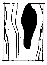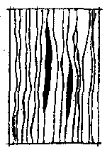 树脂囊图 树脂囊resin pocket木材年轮中充满树脂的条状沟槽。它仅存在于部分具有树脂道的针叶树材中,如云杉、松树、北美黄杉、落叶松等。当它们在生长过程中表面受到损伤,使形成层受到伤害后在木材中的局部树脂过量聚集,在年轮之间形成一种充填树脂,即树脂囊,生产上称为油眼。油眼在原木的横截面上是充满树脂的弧形裂纹,在径切面上呈短小的缝隙,而在弦切面上则为充满树脂的椭圆形或掌形浅沟。较小的油眼并不影响木材的强度,但往往会因树脂溢出而污染木制品的表面,因而也是木材的一种缺陷。