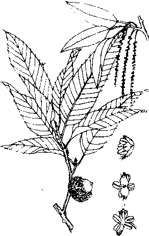 栓皮栎 栓皮栎地方特种经济林木。又名软木栎、牛皮栎、厚皮栓,为壳斗科麻栎属落叶乔叶。湖南是全国栓皮栎主要产区之一,集中分布于常德、石门、慈利、张家界、永顺、黔阳、通道、靖县、新宁等地。栓皮栎用途广泛,使用价值高,木材为良好的建筑、家具用材,栓皮具有绝热、隔音、耐压、质地轻软而富有弹性、不透气、不透水、耐腐蚀等特性,是软木工业的主要原料,树内皮富含单宁,可提炼烤胶,种子即 “橡子”,含淀粉50.4%~60.5%,还原糖4.45%,蔗糖2.96%,粗蛋白3.72%,可做豆腐、豆豉、豆皮等食品,还可造酒精、作饲料。树叶可喂养山蚕,也是沤制农家肥的原料。 栓皮栎壳斗科栎属落叶乔木, 树皮栓皮层发达。产文县、康县、武都、成县及小陇山林区。抗旱、抗火、抗风,适应性广。栓皮质轻软,有弹性,供绝缘、隔热、隔音及瓶塞、救生器具等用,亦为工业原料。种仁做饲料及酿酒, 壳斗可提取栲胶或制活性炭。小材与稍头木可用作培养香菇、木耳、银耳和灵芝。木材坚硬耐磨, 纹理直,花纹美观,结构略粗,强度大。干燥易裂, 耐腐, 耐水湿, 是车轮、船舶、枕木、地板、家具、体育器械等的优良用材。为营造经济林、水源涵养林及防火林的优良树种。 |