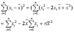 用此公式计算样本方差和标准差较为方便精确。为了更进一步简化平均数 及样本方差S2的计算,还有以下计算公式。❶对每个xi都减去 (或加上)一个常数C,则所得的平均数也就相应地减去 (或加上)这个常数,而离差平方和不变,从而样本方差和标准差也不变,即若x′i=xi干C, 则 =x-干C, S′ 2=S2, S ′ =S。❷对每个xi都乘以 (或除以)相同常数C (C≠0),则所得的平均数也就相应地乘以 (或除以)这个常数,而离差平方和则应乘以(或除以)C2,因此样本方差也就应乘以 (或除以) C2,标准差应乘以 (或除以)C,即若x′i=Cxi,则 ![]() |