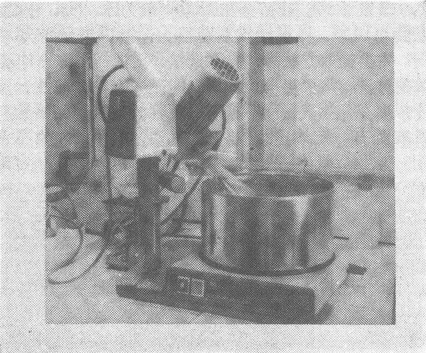 图2 旋转蒸发器 旋转,故温度变化不大时,热量传递较快,使蒸馏能快而平稳地进行,而不发生暴沸; 在使用中还可根据浓缩液体积,更换各种容量(10毫升~1升)的烧瓶。(见彩图48) |