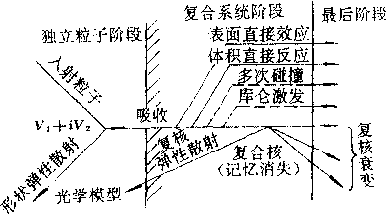 具有一定能量的粒子同原子核碰撞,或两个原子核碰撞,通过相互作用使原子核的状态发生变化或形成新的原子核的过程。例如,将α粒子(即氦核)与氮核碰撞而转变成氧核并放出质子的过程,即42He+147N→178O+11H。一般由粒子α与核A碰撞形成核B和粒子b的核反应可以写为:A+a→B+b,简写为:A(a,b)B。其中α称为入射粒子,若α也是原子核,则称为弹核,A称为靶核,b称为出射粒子,B称为生成核或剩余核。a与A碰撞可产生以下几种可能结果: