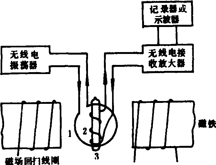 图1 典型的核磁共振仪示意 1.振荡线圈 2.接收线圈 3.样品管