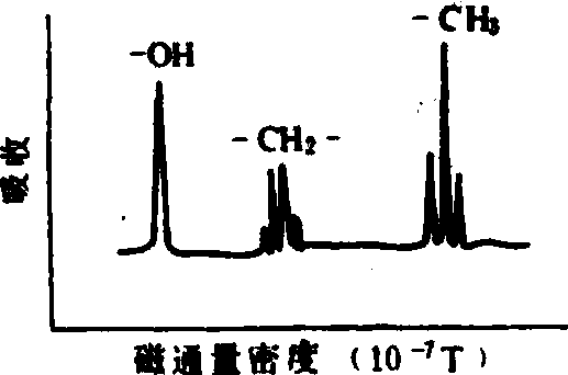 图2 乙醇的核磁共振谱 核磁共振法nuclear magneticresonance,NMR通过测定原子核在磁场中及电磁波照射下的共振信号,作出核磁共振图谱,用以分析鉴定化合物的组成和结构的方法。此法广泛用于物理、化学、生物、高分子材料以及医疗等领域,在农药合成及化合物结构鉴定中极为重要。