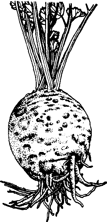 根芹菜肉质根 细胞组织,为主要食用部分,向里为次生木质部。喜冷凉湿润。在土温20℃时生长量大,25℃时生长量较少。肉质根于炎热条件下易引起褐变和腐烂。适宜在供水良好、有机质丰富的轻松肥沃土壤栽培。根芹菜发芽期和幼苗期生长缓慢,播种到成苗需时80~90天,一般采用育苗移植。夏季冷凉地区,于早春在冷床育苗,夏初定植,秋冬收获。夏季炎热地区,于冬季在冷床或温床育苗,早春定植,初夏收获;或于夏季露地育苗,秋季定植,初冬收获。育苗期间,幼苗有3~4片叶时,按10厘米株行距分苗。苗床温度白天宜17~20℃;夜间12~15℃。9~10片叶幼苗定植,株距25~40厘米,行距25~40厘米。密度越大,肉质根越小。根系受伤后不易恢复,定植前后应采取护根及促根措施,以利根系恢复生长,促幼苗成活。植株生长前期,结合浇水早施追肥,促使根系扩展和肉质根适时膨大。后期需供水均匀,促进肉质根迅速膨大。生长期间需及时摘除老叶和侧生枝叶,在肉质根膨大期间,可把根际土壤扒开,用刀修去肉质侧根,使主根生长肥大,表面光洁,形状整齐。霜冻前收获,在0~1℃条件下贮藏。冬季可用肉质根促成栽培,生长嫩叶柄,温度要求14℃以上。选留健康的肉质根留种,贮藏越冬至翌年春土壤解冻后定植,春夏间开花结果。 根芹菜celeriac,rooted celeryApium graveolensL.var.rapaceum DC.,又称根用芹菜、根洋芹、球根塘蒿。伞形花科,芹属。二年生草本植物。2n=2x=22。原产地中海沿岸。欧洲等地栽培较多,中国很少栽培。由叶芹菜演变而来。叶形叶色与芹菜同,但叶柄退化,质粗味苦。根部发达,能形成球形的肉质根,膨大部分主要由短缩茎、下胚轴和根上部组成,与胡萝卜相似,次生韧皮部为主要食用部分。喜冷凉湿润,干旱炎热易引起褐变和腐烂。适于疏松肥沃的土壤栽培,生长期间需及时摘老叶和侧枝,肉质根膨大期间可把根际土壤扒开,用刀修去侧根,促使主根光洁、肥大。用种子繁殖。一般霜冻前收获,在0~1℃条件下贮藏。冬季在14℃以上的保护地利用肉质根促使生长嫩叶柄,以脆嫩的肉质根和叶柄供凉拌、炒食或做汤菜的香辛料。还可入药。 |