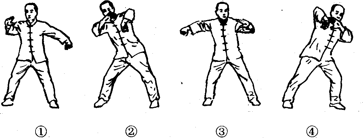 大成拳的基本拳法之一。为由上向下击打的动作。栽捶的动作过程基本同于圈捶,唯下栽前要向上掀肘。(图2—4—89—❶—❹)动作要领、意念、注意事项同于圈捶。