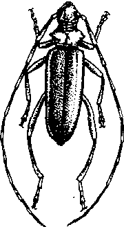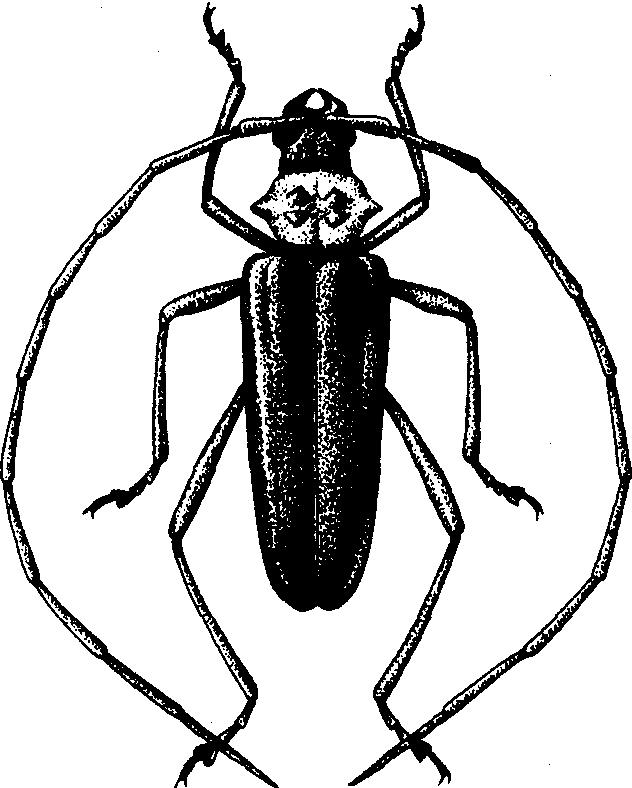 | 释义 | 桃红颈天牛peach longicorn beetle蛀害核果类和仁果类树干的甲虫。又称红颈天牛。学名Aromia bungii(Faldermann)。鞘翅目,天牛科。分布于朝鲜、苏联及中国。为害桃、杏、李、梅、樱桃、苹果、梨、柳等果树和林木,是桃树枝干主要害虫,南方的梅和杏受害也重。在福建、湖北等省有红颈和黑颈两种色型的个体;华北等地只有红颈个体。成虫体长28~37毫米,黑色,前胸棕红色或全部黑色,有光泽,前胸两侧各有一刺突,背面有4个瘤状突起。雄虫体小于雌,前胸腹面密布刻点,触角超过虫体末端5节;雌虫前胸腹面有许多横皱,触角超过虫体末端2节(见图)。幼虫乳白色,前胸背板前半部横列4个黄褐色斑块,背面的两个各呈横长方形,前缘中央有凹缺;位于两侧的斑块略呈三角形;后半部背面淡色,有纵皱纹。