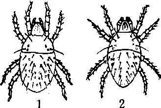 桑红蜘蛛 1.雌成虫 2.雄成虫 |