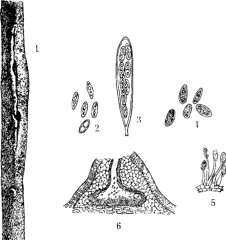 侵染 病菌以菌丝或子实体在被害枝条上越夏和越冬,于第2年散出孢子,从伤口侵入,在一定条件下,也能从皮孔侵入。 本病的发生和冬天严寒有密切关系,凡耐寒性弱的桑树容易受害。此外,凡皮孔较少的桑树,比较抗病,因为病菌能从皮孔侵入内部。一般低干养成的桑树,发病较重,过施氮肥也易导致发病。 病症 桑干枯病一般发生于比较寒冷的地区,且大都在桑树枝干的基部受害,开始在树皮表面发生油浸状暗色的圆形、椭圆形或不整形的病斑,常以冬芽为中心向外扩展。当大病斑围绕枝条周围时,养分通路被阻,致使枝干枯死。一般在五、六月时,病斑扩张最大,带赤橙色,随后,在病斑上形成针尖状的微小突起,6、7月时,外皮破裂,露出黑色的顶端,肉眼观察,好象外皮被针穿刺而生的许多小孔。病菌不侵入根部,所以枝干枯死后,根际能再发不定芽。 防治 注意冬季对于桑树主干基部的防冻保护措施或在秋季可喷药消毒枝干,预防发病。早春融雪后,检查枝干基部,若有油浸状的病斑发现,且限于局部的,可用锐利的小刀刮去病部组织,使呈梭状再行消毒,并涂抹保护剂。 桑干枯病die bark又称胴枯病。分布于江苏、浙江、四川、广东、广西、云南、山东、山西、福建、安徽、江西、河北、陕西、甘肃、辽宁、新疆、台湾等省区的蚕区;印度、日本和朝鲜半岛也有分布。在冬季寒冷和积雪地区危害严重,多发生早春融雪后。枝干上最初出现淡黄色椭圆形或不规则病斑,以后渐变赤褐色、橙黄色,上生鲨鱼皮状小疹,病原Diaporthe nomurali Hara,为子囊菌亚门核菌纲球壳目间座壳科间座壳属的真菌,以分生孢子器及子囊壳在被害枝干上越冬。宜采用选栽抗寒抗病品种;及时清除病枝干;秋末冬初树干刷石灰或石硫合剂等。 |