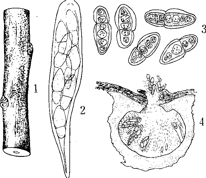 病原 几种较重要的干枯病的病原如下: ❶桑平疹干枯病:病原是黑团壳属,包括好几个不同的种(massaria sp)。所形成的子囊孢子呈黄褐色或无色,外包有一层胶质膜,子囊孢子由4个细胞或4个以上细胞构成。 ❷桑腐烂干枯病:病原是黑腐皮壳属,在同一个属内包括几种不同的种(Valsa sp)。在子囊壳内子囊中形成的子囊孢子为单胞,无色或淡黄色,小形,略弯,呈腊肠形。 ❸桑粗疹干枯病:病原是拟茎点属(phomopsis sp.),在分生孢子器中形成的分生孢子有2型,均为单胞无色,一为线状略弯,一为纺锤形。 ❹桑丘疹干枯病:病原是腐皮壳属,在同一个属内包括几种不同的种(Cryptovalsa sp.)。在子囊壳内子囊中形成的子囊孢子不是8个,而是数量极大,单胞,无色或淡褐色,呈腊肠形。 ❺桑密疹干枯病:病原是壳洛孢属(Camarosporium mori Sacc.)。在分生孢子器中形成的分生孢子、近长圆形,有纵横隔,呈黄褐色。 ❻桑小疹干枯病:病原是茎点属的真菌,在同一个属内包括几种不同的种(Phoma sp.)。在分生孢子器中形成的分生孢子,为小形,单胞,无色。 侵染 和桑干枯病相仿,病原一般于第2年散出孢子,从伤口侵入,凡栽培管理不妥,或受冻害,均易发病。 病症 上述各种拟干枯病,由于病原不同,病斑上出现的小疹,有的较平滑且疹子较大,如平疹干枯病;有的疹子比较触手,如腐烂干枯病; 有的疹子较粗糙,如粗疹干枯病;有的疹子似丘状凸起,如丘疹干枯病;有的疹子比较密集,如密疹干枯病;有的疹子形状较小,如小疹干枯病。 防治 对桑拟干枯病的防治,和对桑芽枯病和桑干枯病的防治相仿,要着重加强对桑树和桑苗的肥培管理以及治虫工作,避免造成伤口:对于幼龄桑株,不宜过早采叶,或采叶过甚,以防在树势衰弱的情况下,诱发本病。 |