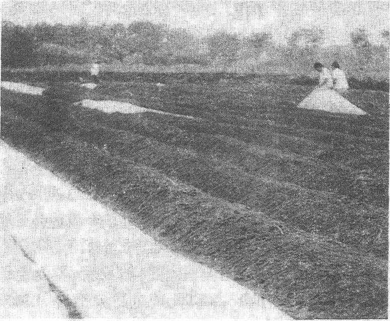 利用太阳能进行土壤消毒防治紫纹羽病的现场 病害控制 桑紫纹羽病常采用以下措施。❶检疫和病苗消毒: 病区商品苗木禁止向无病地区调运。检出的病苗予以烧毁; 对感病轻的或有可能感病的桑苗进行消毒处理。处理方法是用25%多菌灵液或45℃温水浸苗根30分钟,可杀灭桑组织内外寄生病菌,对苗质无不良影响。 ❷开沟隔离: 挖除病株烧毁,在病区范围的四周挖深1.5米、宽0.3米的隔离沟,以防土壤内病菌扩展蔓延。 ❸土壤消毒: 氯化苦或氨水浇灌消毒。用聚乙烯膜覆盖发病桑地,利用太阳能消灭病菌(见图)。 ❹轮作: 发病桑园和苗圃,改种水稻、麦类、玉米等禾本科作物,经4~5年后再种桑培苗。 ❺新建桑园的土地诊断: 用新鲜桑树枝条(径1~1.5厘米),剪成30厘米左右,将2~3枝扎成一束,并将二束扎成“十”字形诱捕束,诱捕束在5~9月横埋约20厘米深穴内,做好记号,经一个月掘起,用肉眼检查菌束。枝条上菌丝有疑问时可在显微镜下检查,是否有“H”形连结菌丝。用此法可避免病土栽桑所造成的严重后果。 ❻加强桑园管理: 做好改土工作,酸性较重的土壤可施石灰,有机肥料须充分腐烂,才能施入,注意桑园开沟排水。 桑紫纹羽病violet root rot又称霉根、烂蒲头。桑树根部的重要病害之一,分布于中国、日本、朝鲜,中国的江苏、浙江、安徽、河南、山东、河北、湖南、广东和台湾等省各蚕区都有发生为害。病株生长显著衰弱,叶形变小,叶色发黄,生长缓慢,进而从枝梢顶端或细小枝条开始枯死,最后引起全株死亡(图)。