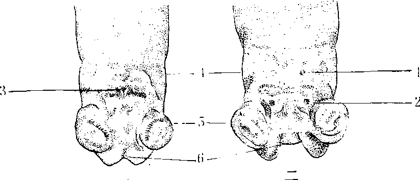 成虫的内部生殖器特别发达,占据着腹腔容积的绝大部分。雌蛾的卵巢和幼虫时显著不同,幼虫时卵巢内的4条卵巢管,在5龄开始迅速伸长,化蛹后挤破卵巢外膜。游离于腹腔内,8条卵巢管每条内约含有蚕卵50~90粒,一只母蛾共计生卵400~720粒。幼虫的生殖导管发育成了成虫的侧输卵管和中输卵管,前生殖芽发育成交配囊、受精囊和前庭,后生殖芽发育成了产卵管和粘液腺。雄蛾的睾丸与幼虫基本相似,外观上发达呈球形,睾丸内4个睾丸胞均充满着精子束,内含许多成熟的精子。幼虫期的生殖导管发育成了输精管,生殖芽(赫氏腺)发育形成了贮精囊、射精囊、射精管、附腺和外生殖器的阳茎(见蚕的生殖附图1、2)。 |