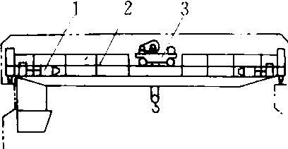 桥式起重机 1.大车运行机构 2. 桥架 3.起重小车 |
