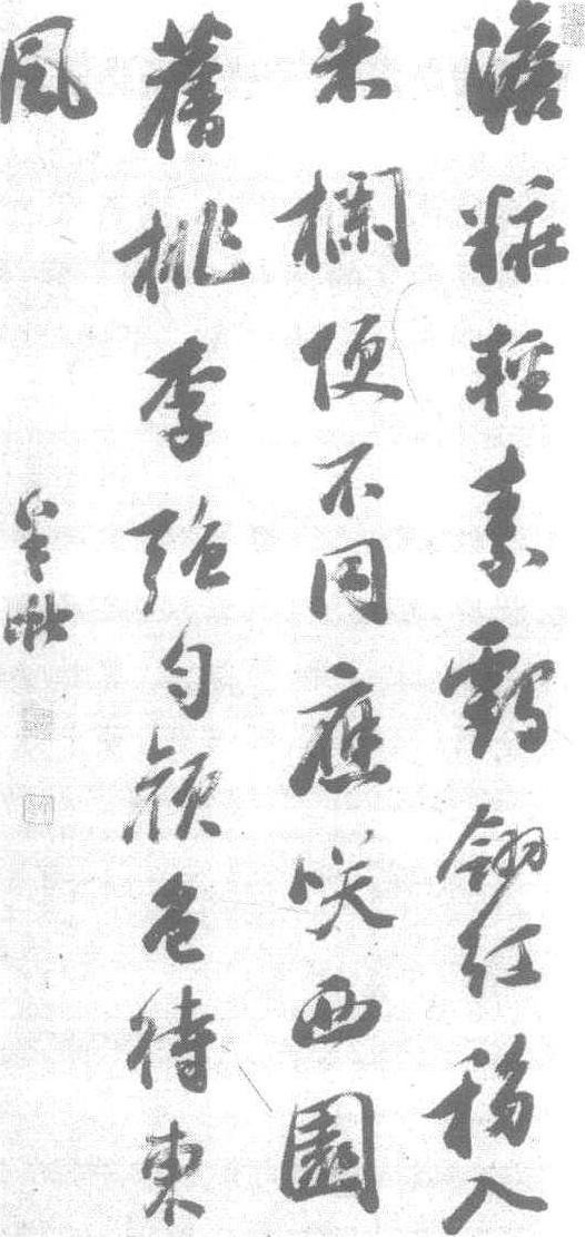 | 释义 | 梁巘行书七言绝轴清。纸本。纵118.3厘米,横56.5厘米。北京故宫博物院藏。梁巘(公元十八世纪),字闻山,号松斋,安徽亳州(今亳县)人。乾隆二十七年(公元1762年)举人,官湖北巴东知县。书法学李邕,笔法润泽,骨肉停匀。赵彦偁云:“乾隆间闻山(梁𪩩)与阶平(梁国治)山舟(梁同书)有三梁之称,细核之,闻山书导源北海(李邕),苍劲之气不独高出阶平,且高出山舟也。”此作品,行书七绝一首:“淡妆轻素鹤翎红,移入朱栏便不同。应笑西园旧桃李,强匀颜色待东风。”笔墨宽博浑厚,体茂神和。中锋运笔,偃仰开合之势具有大家风范。