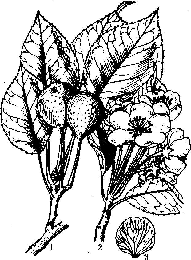 梨的结果习性(白梨)1. 果枝; 2. 花枝; 3. 花瓣 梨花粉受精后,果实开始发育, 花托发育为果肉,子房发育为果心, 胚珠发育为种子。果实生长发育过程中, 前期主要是细胞分裂, 组织分化, 后期则是细胞膨大和果肉成熟。果实体积生长曲线成S型。梨花芽分化期为6月上旬至9月上旬,一般短果枝早于中、长果枝, 顶花芽早于腋花芽。成年树早于幼树及生长强旺的树。梨根系生长每年有两个生长高峰: 第一次生长高峰出现在新梢停止生长时; 第二次高峰出现在9月至10月。在适宜条件下, 梨根系可周年生长,无休眠期。 物候期 梨树因分布范围广, 因而物候期差别很大。就开花期而言, 四川会理, 梨树一般于2月上中旬开花, 吉林延边5月中旬开花; 鸭梨在湖南长沙于3月上旬开花, 辽宁北镇在5月上旬开花,各地花期相差近两个月。同一地区栽培的梨树, 因种类、品种不同, 物候期也有差异, 从芽萌动到开花, 秋子梨类品种最早,白梨类品种稍晚,沙梨类品种晚于白梨类, 而以西洋梨品种为最晚, 变动范围约为10天左右见表2。 表2 不同梨品种在中国辽宁兴城的物候期 (1950~1957)