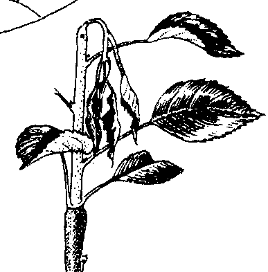 | 释义 | 梨茎蜂pear twig girdler为害梨树枝梢的蜂类害虫。学名Janus piri Okamoto et Mura-matsu。膜翅目,茎蜂科。分布于苏联,西欧及中国。成虫产卵在梨树新梢上,产卵前先用产卵器锯伤新梢嫩茎,孵化后蛀茎为害,是梨树春梢的主要害虫。成虫体长9~10毫米,体黑色有光泽。前胸后缘两侧,中胸侧板及后胸背板的后端黄色。触角丝状黑色。翅透明,足黄色(见图)。卵长椭圆形,稍弯曲,乳白色,透明。幼虫体长10~11毫米。头部淡褐色,胸腹部黄白色。体稍扁平,头胸下弯,尾端上翘。蛹乳白色,后变为黑色。茧棕黑色,膜状。葛氏梨茎蜂头、胸背黑色,翅基片和足均黄色。腿节红褐色,腹部1~3节红色,其余黑色。