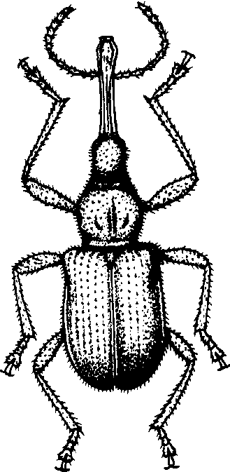 | 释义 | 梨象虫pear curculio梨树蛀果害虫。学名Rhynchites foveipennis Fairmaire。鞘翅目,象虫科。分布于中国东北、华北、西北、华东、华中、华南和四川。为害梨和苹果。成虫长12~14毫米,紫铜色,有金属光泽。全体密布刻点和短毛。雄虫头喙先端稍向下弯,触角着生在近头喙的前端,雌虫头喙略直,触角位于近头喙的中间。前胸略呈球形,背面有一个倒“小”字形凹陷。鞘翅刻点粗大,纵排成9行。卵椭圆形,乳白或黄白色,表面光滑。末龄幼虫长约12毫米,头部淡褐色,胸、腹部淡黄白色,略弯,背面多横皱,胸足退化。裸蛹长8毫米左右,乳白色(见图)。