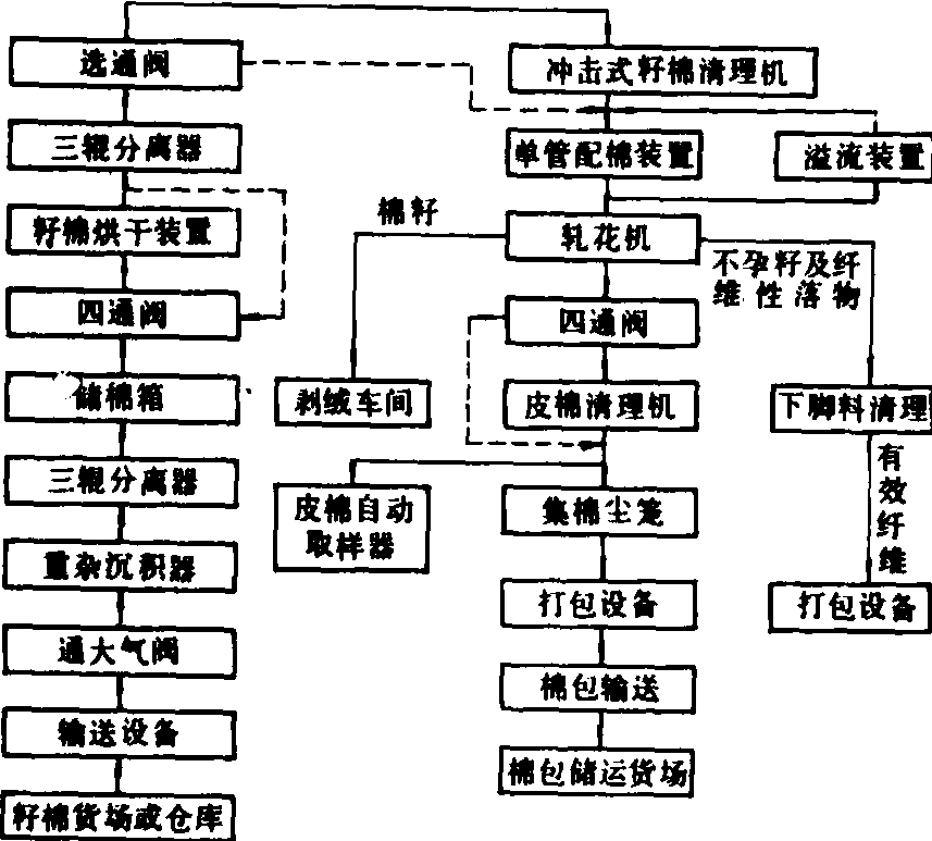 主要设备 包括:清棉机、籽棉干燥设备、轧花机、棉籽脱绒设备、皮棉打包机等。此外,还包括棉花下脚料回收利用、物料输送、通风除尘、安全防火等辅助设备。