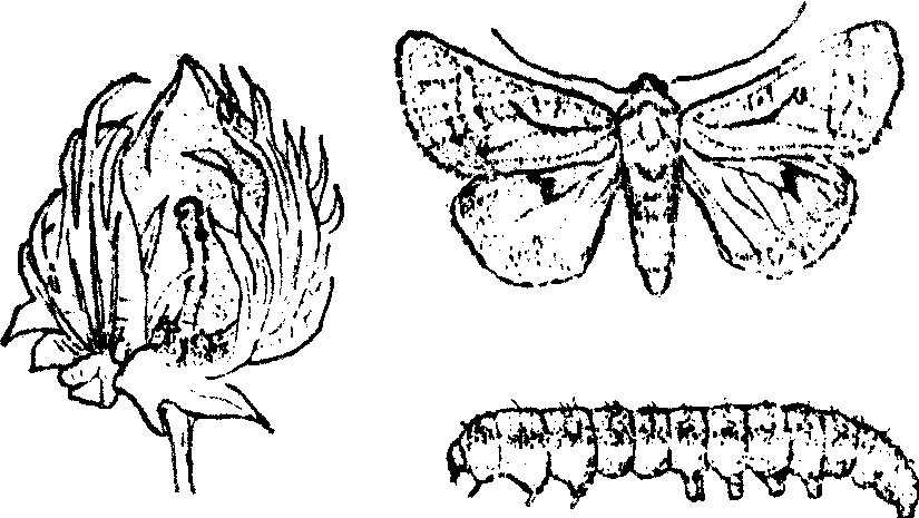 图184 棉铃虫 棉铃虫cotton bollworm蛀食棉花蕾铃等的多食性害虫。学名Heliothis armigera (Hub-ner)。鳞翅目,夜蛾科。
