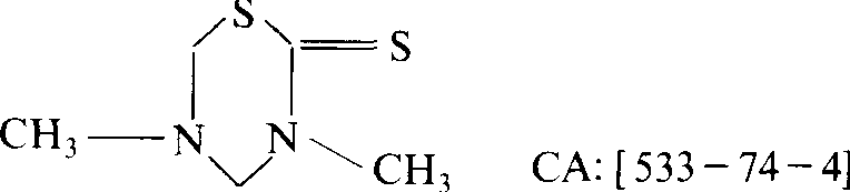 性能 原药为白色结晶,纯度为98~100%,蒸气压4×10-4帕(20℃),熔点104~105℃。易溶于丙酮、氯仿、环己烷、二氯乙烷等多种有机溶剂,20℃时在水中溶解度为0.3%;常温条件下贮存稳定,遇湿则分解。原药对雌雄大鼠急性经口LD50分别为710和550毫克/千克。在试验剂量内,对动物无致畸、致癌作用。对鱼毒性中等,对蜜蜂无毒害。 应用 制剂有98 ~100%微粒剂和75%可湿性粉剂。可用于苗床、温室、育种室、盆栽植物基质和大田等土壤处理。在土壤中分解出有毒的异硫氰酸甲酯、甲醛和硫化氰等;这些分解产物能有效地防治为害花生、蔬菜、烟草、茶、果树、林木等作物的多种线虫和土传病害。每公顷用有效成分60~75千克,撒施或沟施可防治短体属(Pratylenchus spp.)、矮化属( Tylenchorhychus spp.)、纽带属( Hoplolaimusspp.)、剑属(Xiphinema spp.)、根结属(Meloidogynespp.)、胞囊属(Heterodera spp.)、茎属(Ditylenchusspp.)、等线虫。对土壤昆虫、真菌和杂草也有防治效果。药剂施入土壤后,受土壤湿度、温度和土壤结构影响较大;为保证药效,土壤温度应保持在6℃以上,土壤含水量保持在40%以上。棉隆对鱼有毒,水田应慎用。 棉隆dazomet有机硫杀线虫剂。化学名称:3,5-二甲基-四氢化-1,3,5-噻嗪-2-硫酮。化学结构式如下。原药白色结晶,无气味,稍溶于温水(25℃)、乙醇、苯。易溶于丙酮、氯仿,在土壤中能分解成异硫氰酸甲酯、甲基胺、甲醛和硫化氢,它们对土壤线虫、杂草、土居昆虫、真菌都有毒杀作用。田间使用在作物播前或定植前以毒土或对水穴施、沟施。对大鼠急性口服LD50 500 mg/kg,对家兔的眼、皮肤有刺激作用。
