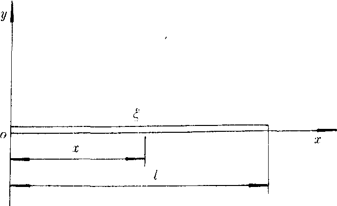 如图示长为l的均质细棒沿棒的x方向施以力即可激起棒的纵振动。在时刻t坐标为x处的横截面的位移 细棒中纵波传播的速度,E是杨氏弹性模量,ρ是棒的密度。根据棒两端不同的边界条件,棒的纵振动具有不同的振动方式。两端固定的棒纵振动的振动频率fn=nv/2l(n=1,2,3,…),在棒中传播的纵波的波长为λn=2l/n。就是说两端固定的棒的纵振动方式与两端固定的弦的振动方式一样,波节和波腹的分布也完全一样,固定端是波节。fn叫棒的固有振动频率(或叫简正频率)。棒作纵振动时,一般同时有许多简正频率在振动,这一系列简正频率fn对应的振动位移为 。此式称为棒的纵振动频率为fn的第n次简正振动方式。其中Bn、ᵠn是第n次振动方式相应的由初始条件决定的常数。因此某一时刻棒纵振动是各种振动方式的叠加,棒的总位移为ζ![]() 动频率相同,只是节点位置不同,在两自由端是波腹。一端自由一端固定的棒纵振动频率为fn=(2n-1)v/4l(n=1,2,3,…),在固定端为波节,自由端为波腹。其基频f1=v/4l,在同样长度l的情况下是两端固定或两端自由的情形的一半,并且它的泛频规律也不同,只存在奇数泛频。棒的振动在声学技术中占有重要地位。电声器件有棒状的,水声换能器、超声换能器等大多呈棒状结构。 |