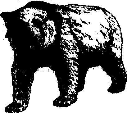图402 棕熊 棕熊brown bearUrsus arctos L. ,又称人熊、马熊。哺乳纲,食肉目,熊科。分布于黑龙江、吉林、辽宁、内蒙古、新疆、四川等省区。头圆而宽,吻长,肩部隆起,鼻、面部的毛短,呈栗棕色,耳朵被有黑棕色长毛。全身黑棕色,腹部毛色比背部浅暗,四肢黑色粗壮具5趾,尾短。栖息于森林中。夏季在森林深处,冬天在洞中冬眠。杂食性,主要以植物嫩芽、嫩草、树根和各种野果、种子为食,最喜食蜂蜜,也食昆虫和蚂蚁等。饥饿时,常捕食麅、鹿、山羊和野猪的幼仔等。隔年生育一次,每胎1~2仔,很少4仔。为中国二级保护动物。 棕熊食肉目熊科,又名狗熊。成年雄性在200千克以上。体长2米,肩高约1米。全身黑棕色,腹面色稍淡,四肢近黑色,但老兽毛色浅。幼兽黑棕色,胸部有环状白斑。分布于新疆各山地。假冬眠动物。2年一胎1—3仔。杂食性。为国家二级保护动物。 棕熊俗名马熊。哺乳纲食肉目熊科棕熊属。生活于密林深处,冬季多在树洞或岩洞内蹲仓冬眠。多白天活动,能爬树,善游泳,亦可直立行走。味觉灵敏,动作拙笨,行走缓慢。杂食性,以植物嫩芽、草、树根、野果、种子及昆虫、鸟、狍、野猪幼仔为食。甘肃分布于天祝、民乐、肃南、肃北、阿克塞等地。冬毛长而绒厚,隔潮保暖性强,可制垫褥或制革。熊胆、脂肪、肉可作药用,掌为名贵食品。国家二级保护野生动物。 棕熊食肉目熊科。又名马熊,分布于东北、西北及西南林区。中国国家Ⅱ级保护动物。体长170~210cm,尾长6~21cm,体重140~450kg。5~7月发情,妊娠期180~266d。次年2~3月产仔,每胎多2(1~4)仔。初生小熊体重340~680g。哺乳期约5个月。4~6岁性成熟。在自然条件下,寿命达25年。在饲养条件下,寿命长达50年。 |