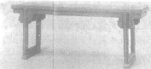 清乾隆。长224厘米,宽48厘米,高89.5厘米。北京故宫博物院藏。案的主要结构如腿足、边抹、牙条、牙头等均镶贴竹黄。长条竹黄在下,大小不同的方形竹黄贴压其上,从而形成了具有立体感套方锦文的效果。余用棕竹包镶。造型洗炼稳重,装饰精密华美,是乾隆时期集多种工艺于一体的精致家具。