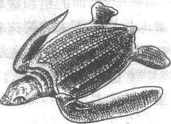 | 释义 | 棱皮龟lengpiguiDermochelys coriacea脊椎动物,爬行纲,棱皮龟科。长达2米余,是现存龟鳖类中最大的一种。背面无角质板,仅有柔软的革质皮肤,上面有7条纵棱,棱间微凹如沟,故称棱皮龟或“革龟”。腹甲骨化不完全,有5条纵棱。四肢呈鳍足状,无爪;前肢较长,后肢和尾短。体背漆黑色或暗褐色,微带黄斑,腹面色浅。善于游泳。以虾、蟹、软体动物,鱼类、海藻等为食。产于我国沿海及热带、亚热带沿海。现已被列为国家二级保护动物。卵可食,肉无食用价值,可制油,甲可制装饰品等。 棱皮龟leatherback turtleDermochelys coriace a L. ,爬行纲,龟鳖目,棱皮龟科。长达2 m余,重700 kg,是现存龟鳖类中最大的一种。背面无角质板,被以柔软的革质皮肤,上面有7条纵棱,棱间微凹如沟;腹甲骨化不完全,有5条纵棱。四肢呈鳍足状,无爪;前肢甚长,后肢短。尾短。体背漆黑色或暗褐色,微带黄斑;腹面浅色。善游泳。以虾、蟹、软体动物、鱼类、海藻为食。广泛分布于三大洋热带、亚热带水域;中国产于南海、东海和黄海。为中国二级保护动物。肉粗,多脂肪,无食用价值,但可提炼油,卵可食,甲可制装饰品等。