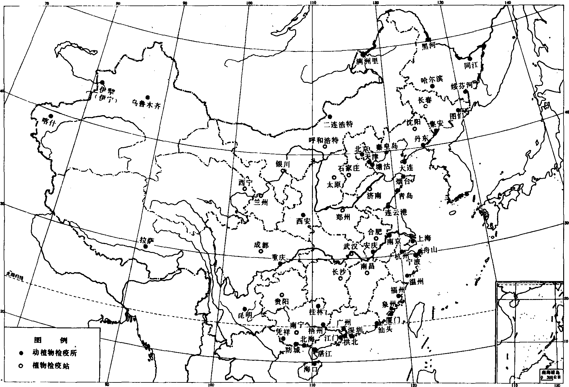 中国口岸动植物检疫所、站分布图 (1987年制) 国际协作 国际协作是植物检疫不可缺少的环节。世界上第一个以防止危险病虫传播为目的的国际公约,是1881年在瑞士的伯尔尼签订的《葡萄根瘤蚜公约》,1929年在罗马签署了《国际植物保护公约》,并统一使用“公约证书”或“罗马证书”。1951年联合国粮农组织(FAO)通过《国际植物保护公约》(InternationalPlant Protection Convention,简称IPPC),至1981年已有80多个国家签署了这个公约。此后,国际上陆续建立了各种包括一定生物地理区域的区域性植保组织,如亚洲和太平洋区域植物保护委员会(Asia andPacific Plant Protection Commission,简称APP-PC),近东植物保护委员会(The Near East PlantProtection Commission,简称NEPPC)等。此外,还有国家之间签订的植保植检双边或多边协定。联合国粮农组织从1952~1971编印了4册《各国植物检疫法规摘要汇编》(Digest of Plant Quarantine Regula-tions),在《粮农组织植保通讯》(FAO Plant Protec-tion Bulletin)中有“植物检疫公告”专栏,报导各国进口植物检疫法规的变动情况。 植物检疫一个国家或行政机构以法规形式禁止或限制危险性植物病、虫、杂草人为的传入、传出,或一旦传入后为了防止扩散蔓延所采取的一系列措施与规定。具有法律效力。 植物检疫plant quarantine依据国家法规,对植物及其产品进行检验和处理,以防止列入检疫对象的病、虫、杂草等有害生物人为传播蔓延的一种植物保护措施。分为对外检疫和国内检疫两种。对外检疫是对进、出口的植物、植物产品及包装物、运载工具进行检疫,经检疫合格才允许进、出口;否则,作熏蒸、消毒处理后,才允许进、出口,或退回或销毁。国内检疫是防止局部地区发生或新传入而扩散不广的危险性病、虫、杂草在国内传播蔓延,其主要任务是划定疫区和保护区,进行国内调运检疫和产地检疫,并制定相应的封锁消灭和保护措施。 植物检疫为防止植物及其产品在流通中传播病害,国家以法律形式采取的措施。检疫内容包括病、虫、草3方面。1660年法国卢昂地区第1个颁布有关检疫的法律。检疫对象必须具备3个条件:属危险性病害、国内或很多地区未发生的病害、由人为传播的病害。包括4个程序:报验、检验、检疫处理、签证。中国植物检疫从20世纪30年代开始,1934年10月颁布《植物病虫害检验实行细则》,1949年后设立植物检疫机构,1966年颁布《执行对外检验的几项规定》1991年10月颁布《中华人民共和国进出境动植物检疫法》,1992年5月公布《植物检疫条例》。 |