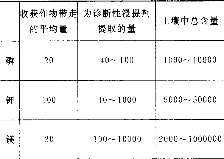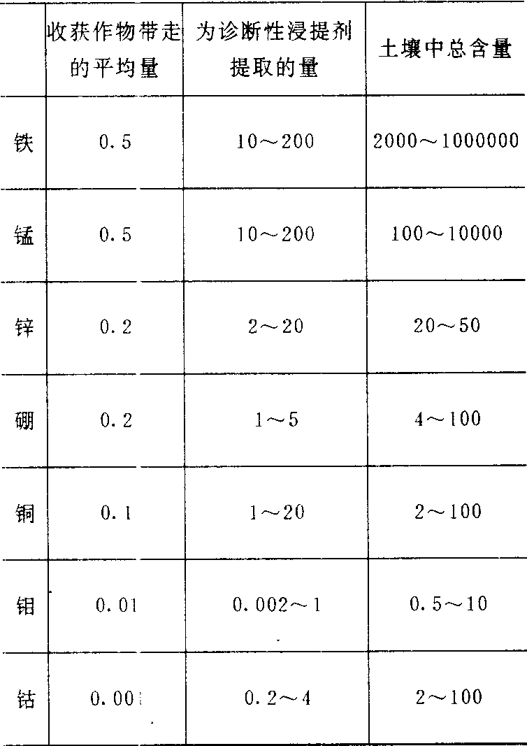 | 释义 | 植物营养元素zhiwu yingyang yuansu植物生长发育和繁殖所必需的元素。以化合物态或离子态存在植物体中。按其在植物体中含量的多少,可分为大量元素(碳、氢、氧、氮、磷、钾、铁、硫、钙、镁等)、微量元素(硼、锰、铜、锌、钼等)和超微量元素(碘、镭、铀等)。各种营养元素对植物各有其独特的营养作用。植物主要从水、空气、土壤和肥料中取得各种营养元素。 土壤与植物收获物中某些常量与微量元素含量(公斤/公顷)