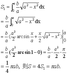 图1 证 由于椭圆 =1关于两坐标轴对称,故只需求出椭圆在第Ⅰ象限的面积(如图1)