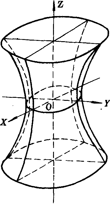 a时,平截线是两个点,当u>a或u<—a时,平截线是虚轨迹. 在y=v上和在z=w上的轮廓线分别是无数个连续变化的相似椭圆,且—b≤v≤b ,—c≤w≤c.即椭圆面位于六个平面x=±a,y=±b,z=±c所围的长方体内. 曲面的形状见图.