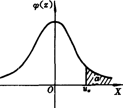 | 释义 | 概率分布的分位点gailu fenbu de fenweidian设一随机变量X服从标准正态分布,即X~N (0,1)。若实数ua/2号使得P {|x|>ua/2)=a,0a/2为正态分布的双侧分位点,即指在ua/2的右侧密度曲线下的面积为a/2,在一ua/2的左侧密度曲线下的面积为a/2(见图1)。若实数-μa使得P {x≤-ua} =a,0a为正态分布的下侧a分位点,即指在-ua的左侧密度曲线下的面积为a (见图2)。若实数u a 使得P {x>ua}=a,0a为正态分布的上侧a分位点,即指在u a的右侧密度曲线下的面积为a (见图3)。 图1 图2 图3 |