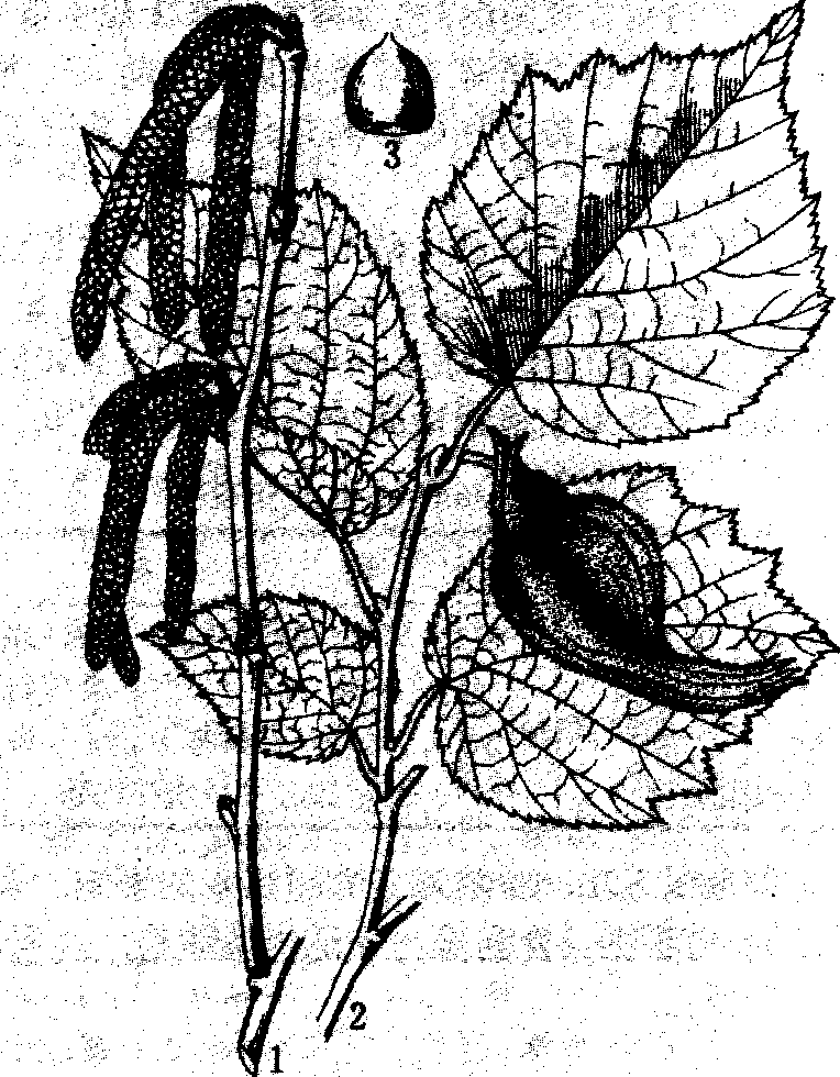 毛 榛1. 花枝; 2. 果枝; 3. 果实
