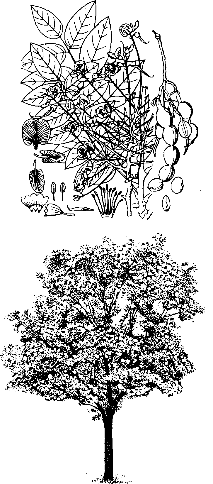 槐原产中国黄河中下游地区,是乡土树种,除黑龙江、吉林、西藏及海南等地外皆有分布,日本和朝鲜也有。多分布于海拔1000m以下地区。阳性树种,幼树稍耐阴,大树能在建筑物北侧(平均日照在10小时以下)生长,仅长势稍差。耐干冷、高温干旱环境。深根性,在深厚、肥沃、排水良好的砂壤土中生长良好,在碱性土(pH值9.71)、微酸性及盐碱土(含盐量0.3%以下)也能生长。对城市碴土密实土壤的耐性也较强。萌芽力强,耐强修剪,大树移植易成活。对CO2、HCl等有毒气体及烟尘抗性强。寿命长,在中国陕西临潼县、长安县有2000多年的汉槐,山西、山东、河南等地及北京都有千年以上的隋槐、唐槐。 一般用播种繁殖,10月果熟后采种,用水浸泡,槎去果皮,即可秋播;也可将种子干藏或混沙层积至翌年春播。苗干易倾斜,故须密植或林农间作。《齐民要术》有:“槐子…和麻子撒之…麻熟刈去,独留槐…。亭亭条直,千百若一。”现仍有参考价值。北京地区苗圃多采用以下措施:第一年春播育苗,秋后掘起假植越冬。第二年培养根系,将苗按株行距40cm×60cm移栽,加强养护,不修剪,促使养成强大根系。秋季落叶后齐地截干。第三年培养主干,早春加强水肥管理,萌芽后仅留1~2个健壮萌条,除掉其余萌蘖。至5月底每株只留1个主干,对生长过强的侧枝要及时摘心,促使干高而直,入秋后,停止水肥,使主干充分木质化,安全越冬。第四年培养树冠,将主干通直的苗木按株行距1m移植,生长季按定干要求(2~2.5m)选留主枝(一般为3枝),及时剪除主干上的侧枝及萌芽。第五年树干粗3cm以上,树冠圆整即可出圃。‘龙爪’槐、‘曲枝’槐等园艺变种均以实生槐作砧,行嫁接繁殖,早春采用高枝接或在5月行芽接,也可在7月份用当年新生芽芽接。槐树栽培管理简便,大树移植,实行重剪,也可成活。 主要病虫害有腐烂病(Macrophoma sophora,Fusarium sp.)、槐尺蠖(Semiothisa cinerearia)、蚜虫及红蜘蛛等。 槐树冠广阔匀称,枝叶茂密,树姿优美,老树尤显古老苍劲,为华北、西北城市绿化优良树种。宜作行道树、庭荫树、园景树、四旁绿化及工矿区绿化树种。‘龙爪’槐、‘堇花’槐、‘曲枝’槐、五叶槐等植于厅前、道旁及草坪边缘,为观赏价值很高的园景树。花是很好的蜜源。花蕾、果实、根皮、枝叶入药。 同属植物见于栽培观赏的种类还有:白刺花(S.davidii),别名马蹄针。落叶灌木,高2.5m,小枝顶端有刺,花冠白或蓝白色,果有喙,适做绿篱。 槐夏朝君主。又作帝芬、祖武。杼之子。在位之初,曾经征服居住于泗水、淮水之间的九夷 (畎夷、于夷、方夷、黄夷、白夷、赤夷、玄夷、风夷、阳夷),在位第三年,九夷都来朝拜,说明此时夏王朝的势力在继续扩大。在位二十六年,病卒。葬安邑。 槐Huai豆科。又名国槐,为首都北京的市树。落叶乔木。奇数羽状复叶,小叶7—15,卵状长圆形或卵状披针形,全缘;托叶镰刀状,早落。圆锥花序,通常7月开花,花黄白色,花冠蝶形,雄蕊10枚,完全分离。荚果不开裂,在种子间收缩成串珠状;种子1—6粒,肾形,黑褐色。原产我国,南北普遍栽培,以华北及黄土高原最常见。中等喜光,不耐阴,对土壤要求不严。为庭园树及行道树;木材纹理直、富弹性,耐水湿。供建筑、家具、农具等用材;花蕾可作黄色染料;花、果、树皮可入药,有凉血止血、清肝明目功效。又是蜜源植物。本种常和刺槐相混,区别在于本种圆锥花花序,7月开花,10枚雄蕊离生,荚果串珠状,不开裂,托叶不成刺状。 槐豆科落叶乔木。又称国槐、家槐。高达25m,胸径1.5m。树皮灰黑,纵裂,小枝绿色。奇数羽状复叶,小叶7~17,长圆形,圆锥花序,花冠黄白色,长1~1.5cm。果念珠状,长8cm,肉质。花期6~8月,果期10月。陕西、甘肃、辽宁、山西以南广泛栽培,华北平原常见树种。生长势强,对二氧化硫、氮气、氮化氢及烟尘都有抗力。北京、西安等城市的市树。各地寺院保存有数百、上千年古树。栽培有龙爪槐、毛叶槐、堇叶槐、五叶槐等变种。近年从实生苗中选出有金叶槐,叶金黄色,在普通槐上嫁接,可改善国槐的绿化景观效果。同属还有沙生槐、白刺槐、甘肃槐树、灰毛槐树、云南槐等灌木。 |