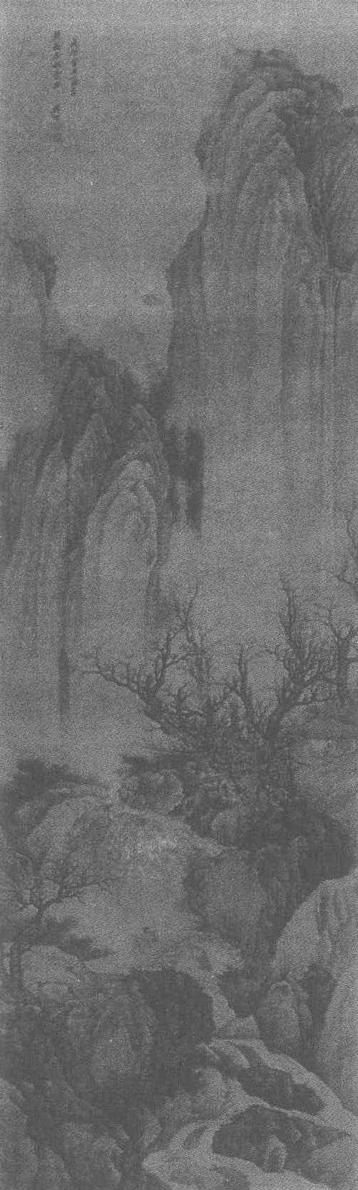 | 释义 | 樊圻秋山听瀑图轴清。樊圻绘。绢本设色。纵183.6厘米,横57.6厘米。辽宁省旅顺博物馆藏。樊圻见《樊圻山涧奔流图扇页》条目。这是一幅秀丽雅致的山水画轴。峰峦迭起,雄奇壮美。飞瀑如练,直落千仞,轰然有声。远山以淡墨轻抹,秀峰下有怪异苍雄的巨石,石缝间顽强生长的树木,其叶多已落尽,而残存的饮霜红叶分外醒目。涧水奔激,跌宕而至。一石质拱桥横跨两岸,挑担的侍童行走于桥上。彼岸的坡地上有茅亭一座,亭中的两人似在侧耳倾听瀑声。所绘瀑布具有飘垂感,而涧水的湍流则具有跌荡不休的动感。山石以斧劈皴绘制,严谨、繁密,笔墨苍润,空气中的潮湿通过笔墨而流露。全图设色淡雅,其秋意令人心清气爽,荡涤肺腑,此图绘于公元1668年。